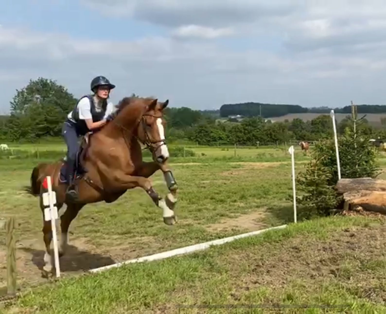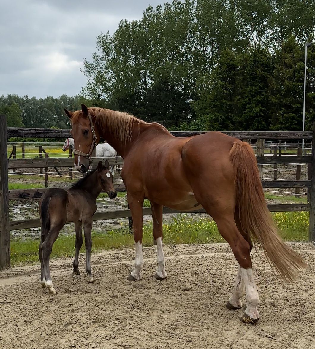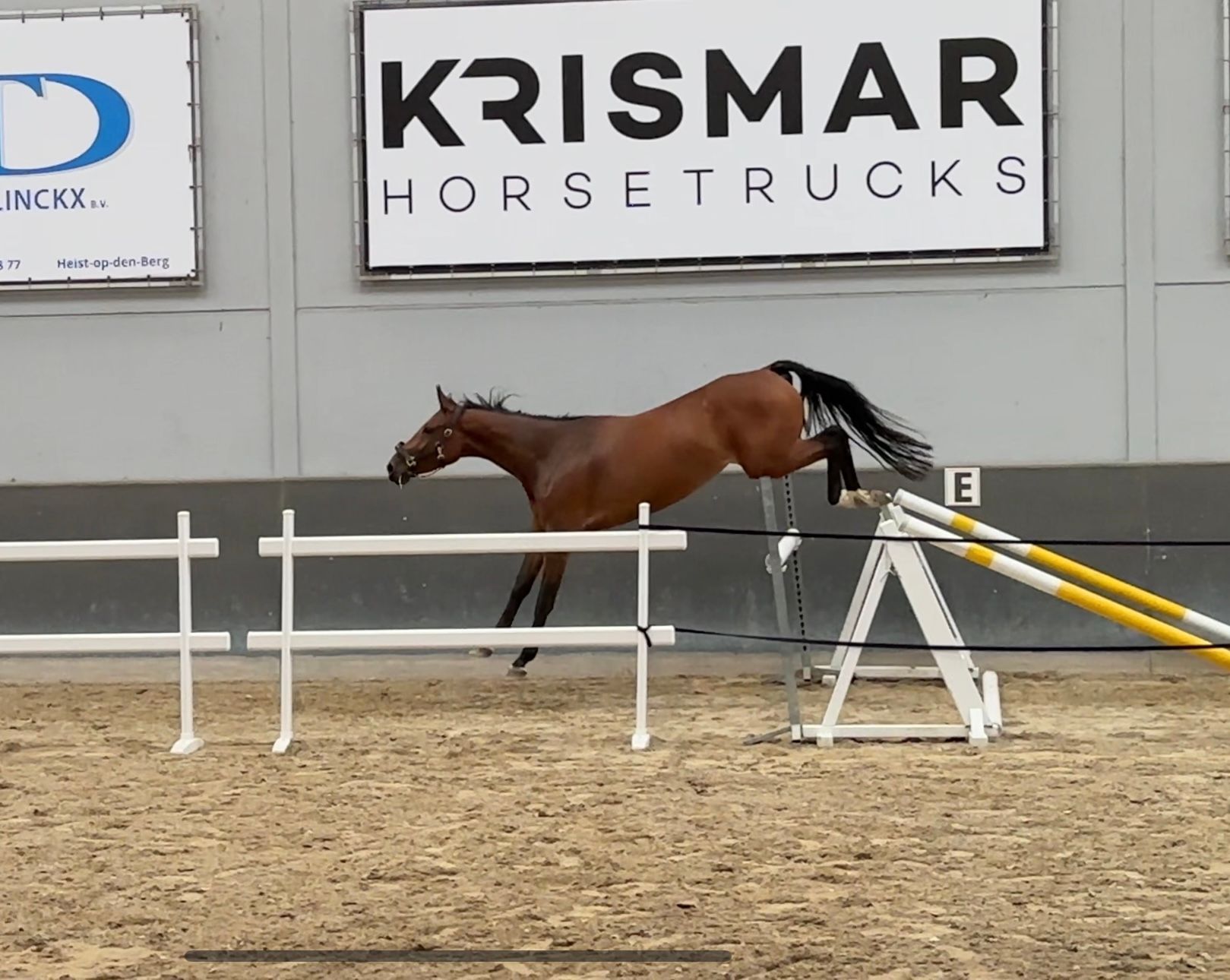 Investment in our future, this filly comes with an impressive pedigree, out of the damline of Narcotique de Muze II. Sire is Cornet Obolensky (no further introduction needed) and on her mother’s side we find Marius Claudius and Nabab de Rêve. Her mother line is impressive with countless offspring performing internationally at 1.40m level and higher. Saddle broken in spring 2025 and currently making her first jumps under the saddle. She's showing plenty of scope and technique, along with temperament and character.