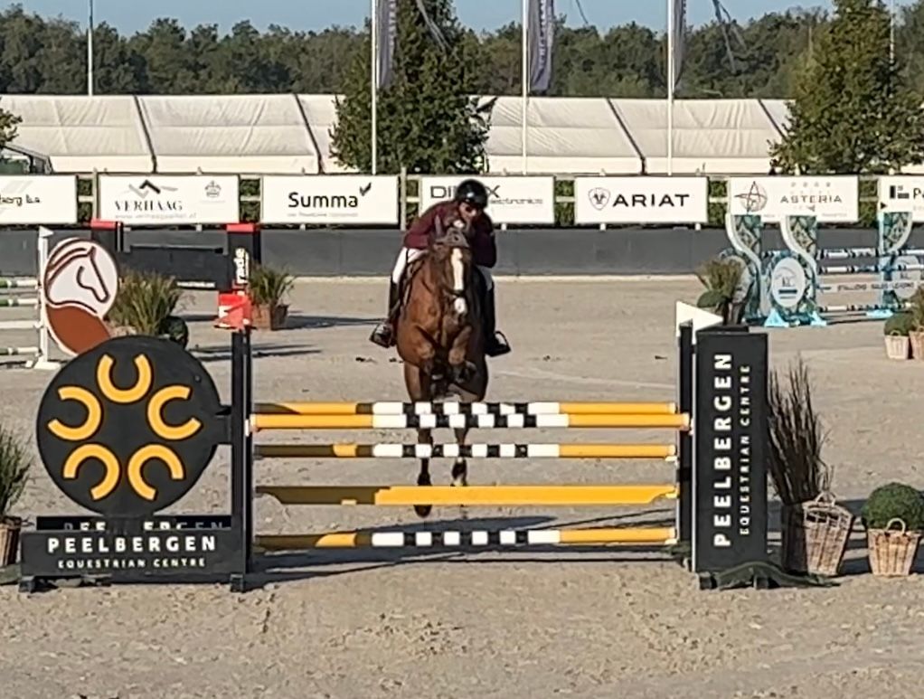 First foal of our breeding mare Espoir, by Nixon van 't Meulenhof. Nixon's power, presence, technique and intelligence make him one of the most exciting stallions of the past years. Currently jumping the 120 - 125 classes he makes heads turn with his scope, technique and agility. Rarely makes a mistake, loves the jumps.